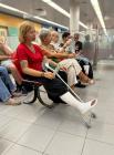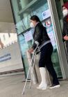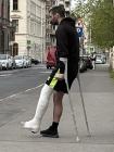 We offers clips of crutching and hopping, leg cast and sprained ankle with models from Europe.