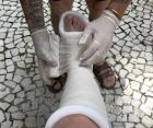 European models with cast, sprains & crutches.
