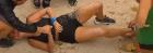 We offers clips of crutching and hopping, leg cast and sprained ankle with models from Europe.