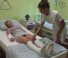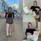 We offers clips of crutching and hopping, leg cast and sprained ankle with models from Europe.