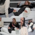 Svitlana is at home preparing dinner dressed with a short black tube when she takes a bad sprain in her right ankle. She falls down and touches her poor foot trying to ease the pain with a self-massage. As pain increases she calls her husband for help and she's carried to bed supported under armpits. There her injured ankle is gently pampered with a long massage before being immobilised in a black aircast.