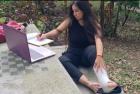 Noemi barefoot crutching