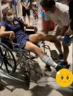 Reni is in the hospital. Aftre ths shoulder spica cast making, she also gets a short leg walking cast.