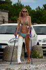 Having now been in a cast for 20 days, Svitlana doesn't want to miss out the beach and her tan. You see her appear on the seafront road, crutching with ease despite her leg casted with a straight knee and a bent ankle, forces her into an extremely difficult position. Without shame and with a touch of exhibitionism, she decides to strip down to her swimsuit in front of a barrow, attracting the attention of people, before continuing her walk in just her swimsuit and the enormous white cast that contrasts with her tanned skin. Finally, she reaches the desired sea rocks, where she lies down to be admired like a broken siren.