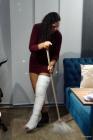 Colombian professional model Hannah wears her plaster Long Leg Cast showing you her daily homelife with her broken leg heavily immobilized, including hot porn activities.