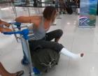 Content featuring cast, crutches and neck brace.