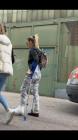 Im Inneren bewegt sie sich mit sinnlicher Leichtigkeit, während sie sich ein köstliches Mittagessen aussucht. Doch es ist vor der wunderschönen Kuchenvitrine, dass alle Blicke intensiv auf ihren Gips gerichtet sind – ein Detail, das ihre Schönheit nicht verbirgt, sondern betont.