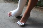 European models with cast, sprains & crutches.