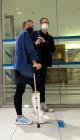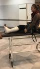 We offers clips of crutching and hopping, leg cast and sprained ankle with models from Europe.