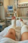 Inhalt mit Gips, Krücken und Halskrause.