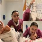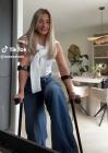 Here you'll see her walking around on crutches, jumping, and showing off every detail of her cast and her beautiful fingers.