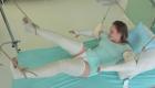 After the car accident mother and daughter are in the hospital. They have four leg cast. They are in the hospital room together with nurse.