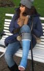Ukrainian professional model Svitlana wears her long-term plaster Long Leg Walking Cast after breaking her tibial plateau during ice-skating in this exciting set showing a lot of outdoor activities as well as sexy intimate moments.
