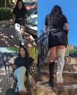 Like two parallel stories, you'll continue to follow the two injured friends until they meet again. Svitlana, wearing black shorts that reveal her entire legs and her casted foot, uses underarm crutches for a very long distance, struggling especially to walk down the steep stairs. Larissa, wearing a purple dress that partially covers her very high thigh cast, uses forearm crutches with greater difficulty through the village streets to reach Svitlana.