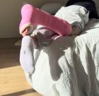 Ukrainian professional model Svitlana sprains her right ankle ending in Aircast in this short and elegant story.