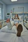 Reni is in the hospital. Aftre ths shoulder spica cast making, she also gets a short leg walking cast.