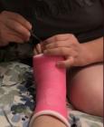 European models with cast, sprains & crutches.
