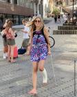 The most Desire amputee model now flaunts a perfect white cast while walking on crutches, going down stairs, getting in and out of cars, and enjoying coffee at an elegant spot.