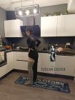 Hannah now appears as an elegant woman who takes care of her home despite her broken leg. Dressed in a tight-fitting jumpsuit that emphasizes her body, she does household chores while enduring the pain and great effort and discomfort that her long-leg cast forces her into.
