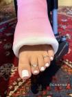 Benetta is in the hospital getting used to her new term plaster cast exercising her foot, checking the weight and trying out her crutches in a flip flop. She checks out her far her long toes will stick out of this one and tries getting comfortable in it while she takes her mind off of it while she plays with her casted toes with the toes of her good foot.