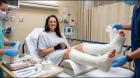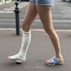 We offers clips of crutching and hopping, leg cast and sprained ankle with models from Europe.